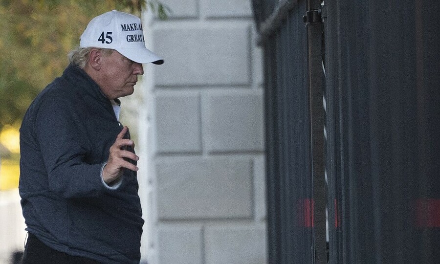 Tổng thống mặc áo khoác đen, quần tối màu và đội mũ trắng “Làm cho nước Mỹ vĩ đại trở lại”. Tổng thống rời Nhà Trắng trước 10 giờ sáng. Trước đó, ông đã tweet về việc nghi ngờ gian lận bầu cử.