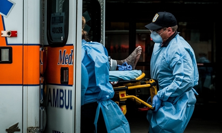 Nhân viên y tế ở Newark, New Jersey chỉ đưa bệnh nhân đến xe cứu thương vào tháng trước. Ảnh: “Thời báo New York” – Vào tháng 3, Trung tâm kiểm soát và phòng ngừa dịch bệnh (CDC) kêu gọi nhân viên ứng phó khẩn cấp phải hết sức cẩn thận khi thực hiện các hành động có thể lây lan nCoV. , Bao gồm CPR.